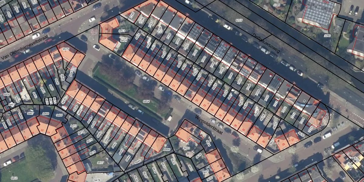 Wippolderstraat 16 is gelegen op kadastraal perceel DEL00A9422. Deze kadastrale aanduiding is uniek en wordt gebruikt door het Kadaster om eigendomsrechten en andere zakelijke rechten vast te leggen. Het perceel maakt onderdeel uit van de kadastrale gemeente Delft.