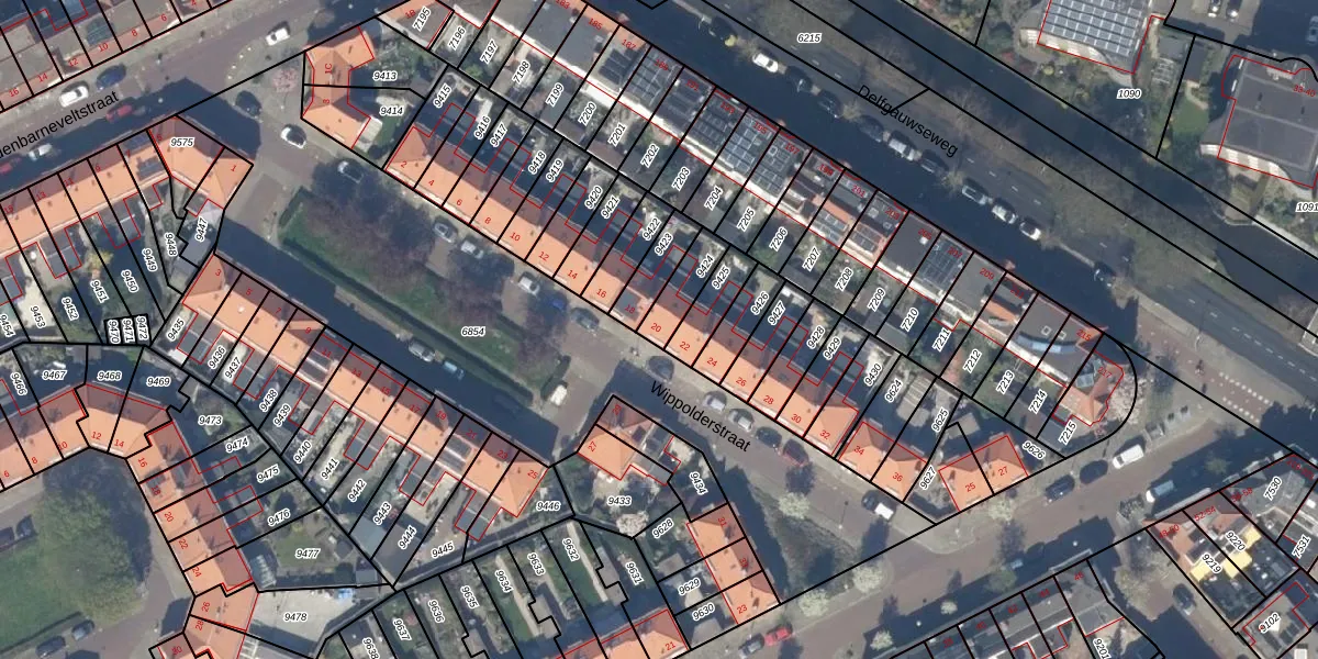 Wippolderstraat 20 is gelegen op kadastraal perceel DEL00A9424. Deze kadastrale aanduiding is uniek en wordt gebruikt door het Kadaster om eigendomsrechten en andere zakelijke rechten vast te leggen. Het perceel maakt onderdeel uit van de kadastrale gemeente Delft.
