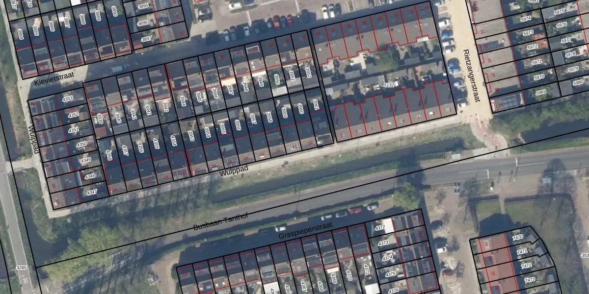 Gebruik de zoekbalk of klik op een perceel voor informatie over de adressen binnen dit perceel.