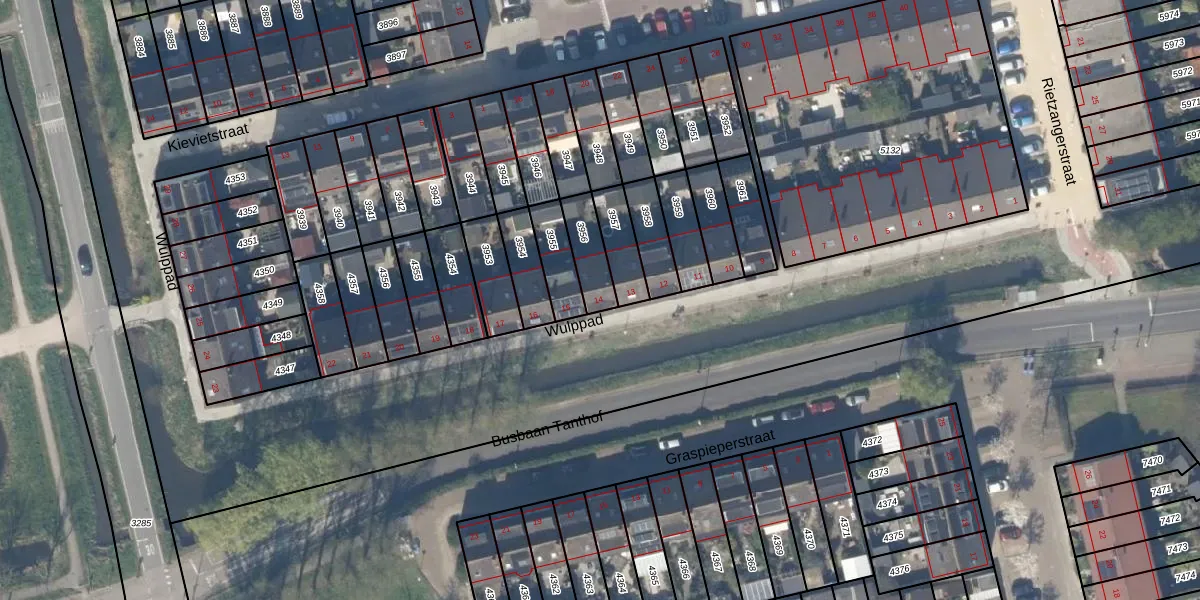 Gebruik de zoekbalk of klik op een perceel voor informatie over de adressen binnen dit perceel.
