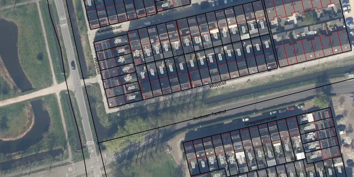 Gebruik de zoekbalk of klik op een perceel voor informatie over de adressen binnen dit perceel.
