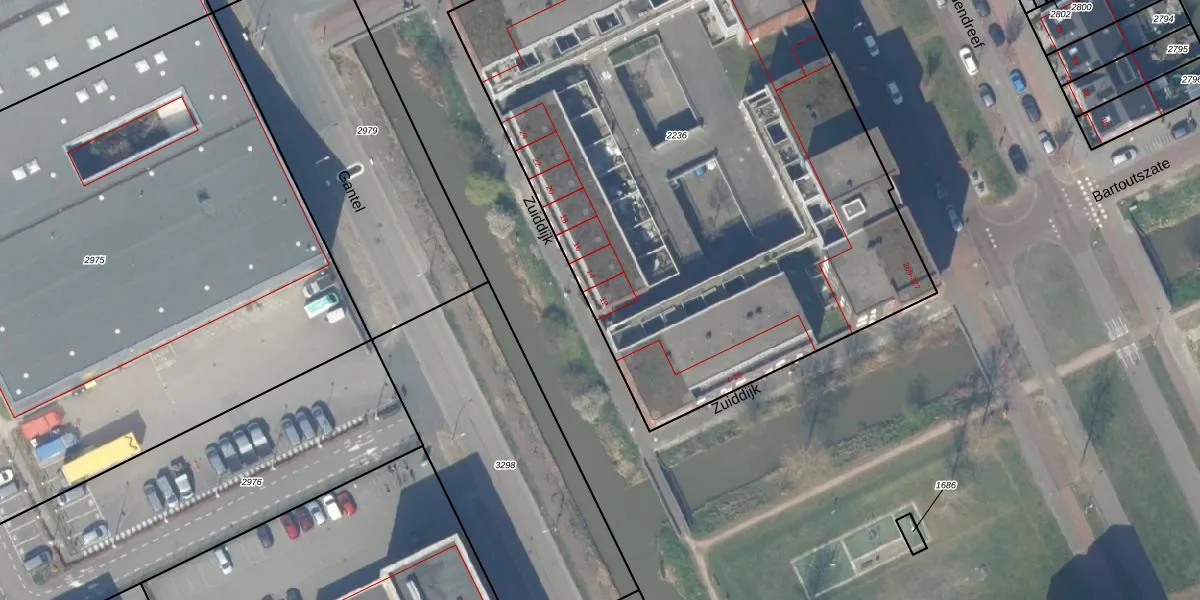 Zuiddijk 12 is gelegen op kadastraal perceel DEL00V2236. Deze kadastrale aanduiding is uniek en wordt gebruikt door het Kadaster om eigendomsrechten en andere zakelijke rechten vast te leggen. Het perceel maakt onderdeel uit van de kadastrale gemeente Delft.
