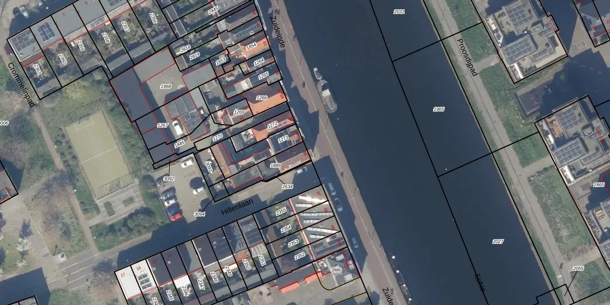 Zuideinde 96 is gelegen op kadastraal perceel DEL00O1889. Deze kadastrale aanduiding is uniek en wordt gebruikt door het Kadaster om eigendomsrechten en andere zakelijke rechten vast te leggen. Het perceel maakt onderdeel uit van de kadastrale gemeente Delft.