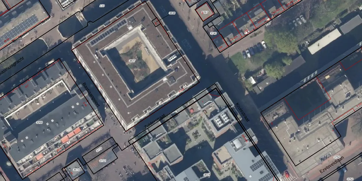 Het perceel waarop het adres ligt is DEL00-E-3837. De afkorting 'DEL00' staat voor kadastrale gemeente Delft. De gemiddelde perceeloppervlakte in de kadastrale gemeente Delft is 923,41 m². Dit perceel is met zijn 2633 m² dus groter dan gemiddeld. Het grootste perceel in de kadastrale gemeente is 64,1 ha. Het kleinste perceel heeft een oppervlakte van 0 m². Op het perceel liggen in totaal 65 adressen. In de Basisregistratie Kadaster (BRK) werden de grenzen van het perceel geregistreerd op 20-01-2022.