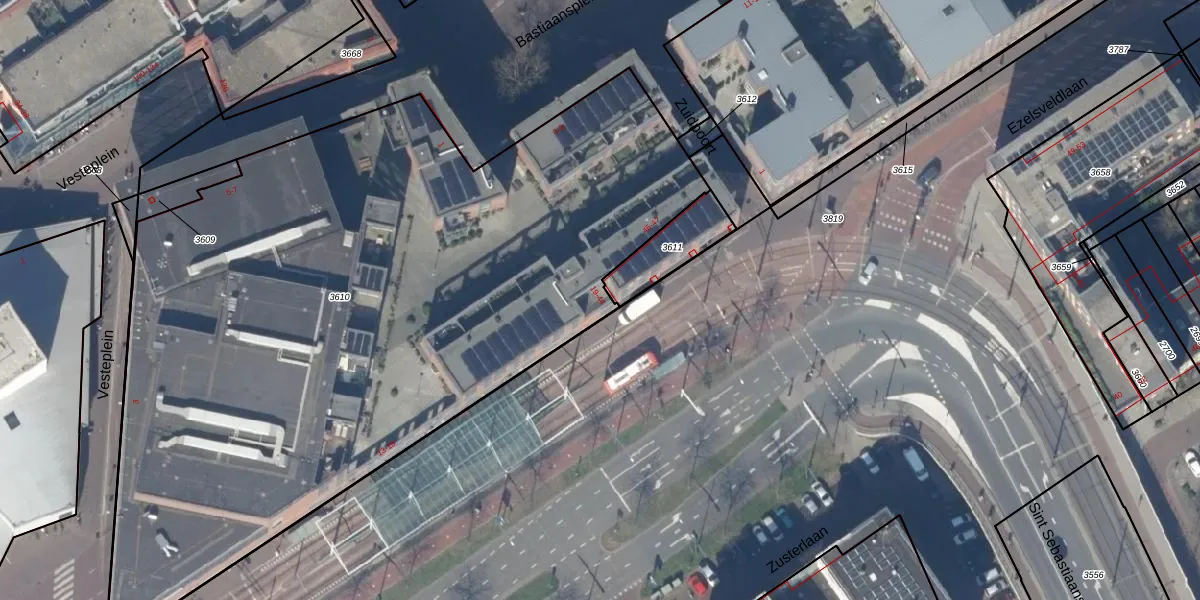 Het adres is gelegen op perceel 3610 in de sectie E en de kadastrale gemeente Delft. De kadastrale aanduiding is aldus DEL00-E-3610. De oppervlakte van het perceel is 4801 m². Dat is groter dan gemiddeld in Delft, waar de gemiddelde perceeloppervlakte op 924,72 m² ligt. De grootste perceeloppervlakte in de kadastrale gemeente is 64,1 ha. De kleinste oppervlakte bedraagt 0 m². Op het perceel liggen in totaal 40 adressen. De laatste wijziging in het de Basisregistratie Kadaster (BRK) was op 12-10-2010.