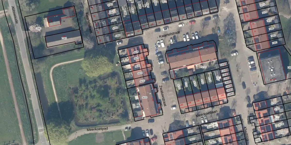 Het perceel waarop Zwaluwstraat 19 staat heeft een oppervlakte van 104 m². Dit is een middelgroot perceel. De perceeloppervlakte wordt geregistreerd door het Kadaster. Gedetailleerde informatie over de maten van dit perceel kunt u vinden in het rapport Kadastrale kaart met maatvoering van Zwaluwstraat 19.
