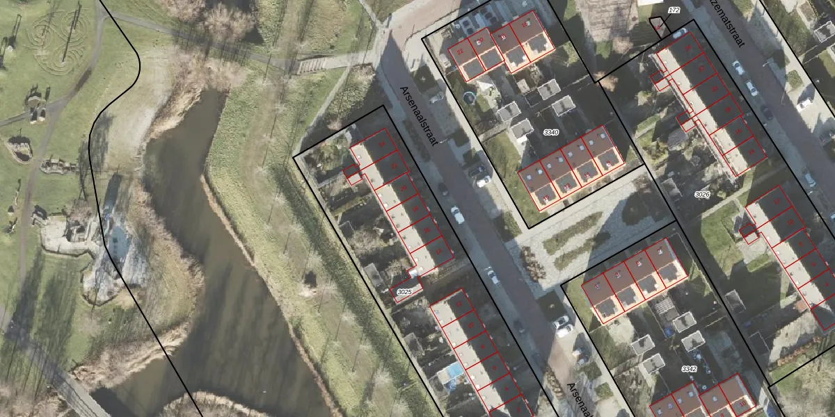 Het perceel waarop Arsenaalstraat 18 staat heeft een oppervlakte van 2125 m². Dit is een zeer groot perceel. De perceeloppervlakte wordt geregistreerd door het Kadaster. Gedetailleerde informatie over de maten van dit perceel kunt u vinden in het rapport Kadastrale kaart met maatvoering van Arsenaalstraat 18.