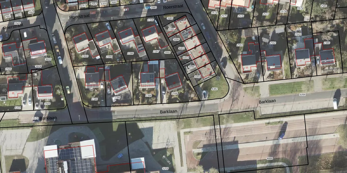 Het perceel waarop Barklaan 13 staat heeft een oppervlakte van 419 m². Dit is een groot perceel. De perceeloppervlakte wordt geregistreerd door het Kadaster. Gedetailleerde informatie over de maten van dit perceel kunt u vinden in het rapport Kadastrale kaart met maatvoering van Barklaan 13.