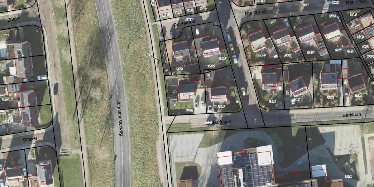 Gebruik de zoekbalk of klik op een perceel voor informatie over de adressen binnen dit perceel.