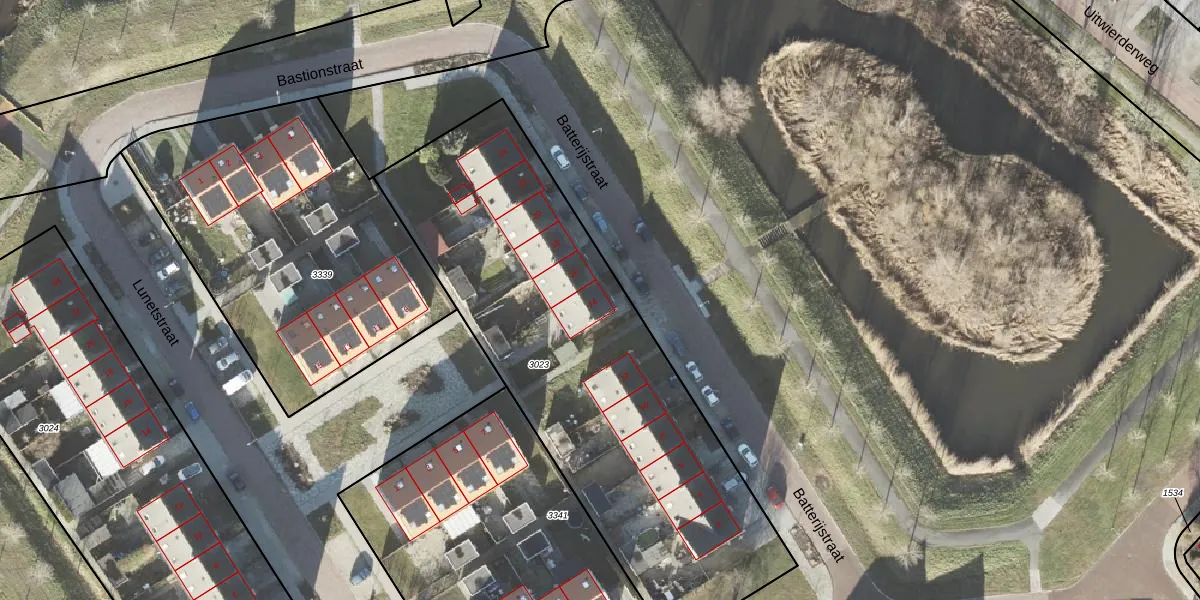 Het perceel waarop Batterijstraat 14 staat heeft een oppervlakte van 2305 m². Dit is een zeer groot perceel. De perceeloppervlakte wordt geregistreerd door het Kadaster. Gedetailleerde informatie over de maten van dit perceel kunt u vinden in het rapport Kadastrale kaart met maatvoering van Batterijstraat 14.