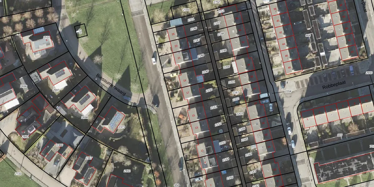 Gebruik de zoekbalk of klik op een perceel voor informatie over de adressen binnen dit perceel.