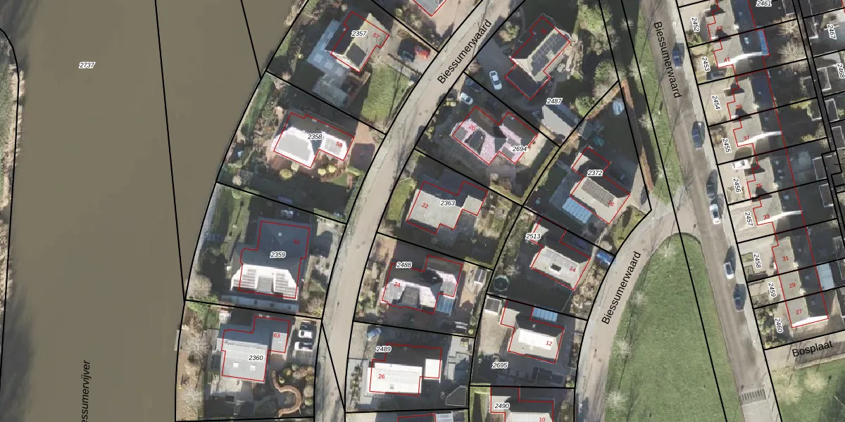 Biessumerwaard 22 is gelegen op kadastraal perceel DZL01M2363. Deze kadastrale aanduiding is uniek en wordt gebruikt door het Kadaster om eigendomsrechten en andere zakelijke rechten vast te leggen. Het perceel maakt onderdeel uit van de kadastrale gemeente Delfzijl.