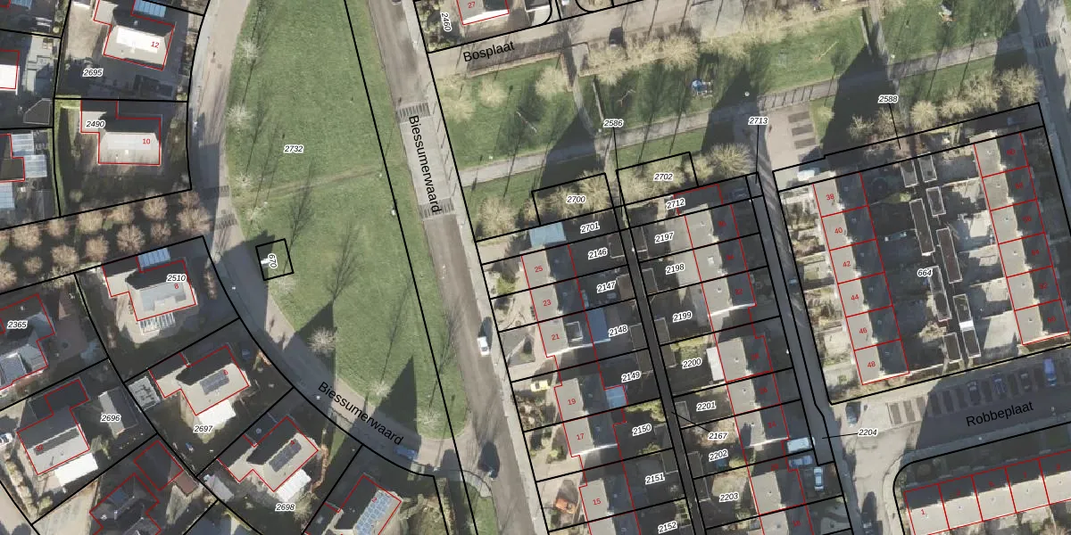Het perceel waarop Biessumerwaard 25 staat heeft een oppervlakte van 175 m². Dit is een middelgroot perceel. De perceeloppervlakte wordt geregistreerd door het Kadaster. Gedetailleerde informatie over de maten van dit perceel kunt u vinden in het rapport Kadastrale kaart met maatvoering van Biessumerwaard 25.