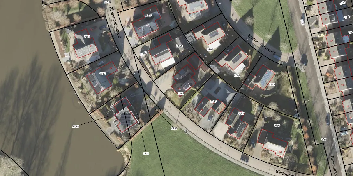 Het perceel waarop Biessumerwaard 34 staat heeft een oppervlakte van 565 m². Dit is een groot perceel. De perceeloppervlakte wordt geregistreerd door het Kadaster. Gedetailleerde informatie over de maten van dit perceel kunt u vinden in het rapport Kadastrale kaart met maatvoering van Biessumerwaard 34.