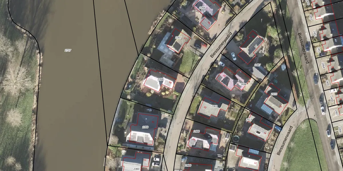Biessumerwaard 59 is gelegen op kadastraal perceel DZL01M2358. Deze kadastrale aanduiding is uniek en wordt gebruikt door het Kadaster om eigendomsrechten en andere zakelijke rechten vast te leggen. Het perceel maakt onderdeel uit van de kadastrale gemeente Delfzijl.