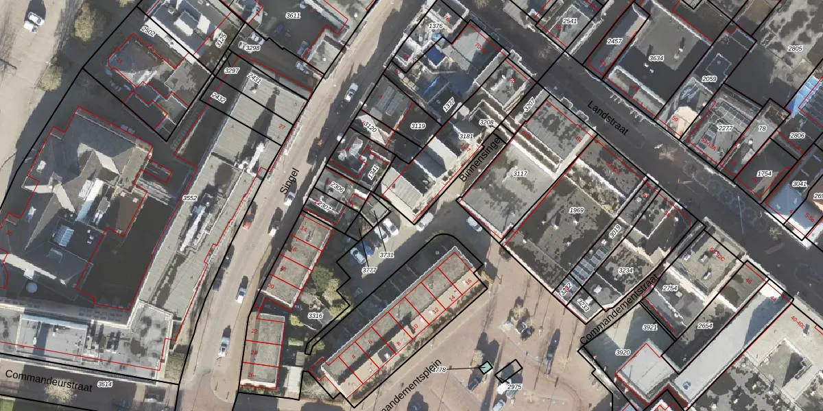 Het perceel waarop Binnensingel 45 staat heeft een oppervlakte van 508 m². Dit is een groot perceel. De perceeloppervlakte wordt geregistreerd door het Kadaster. Gedetailleerde informatie over de maten van dit perceel kunt u vinden in het rapport Kadastrale kaart met maatvoering van Binnensingel 45.