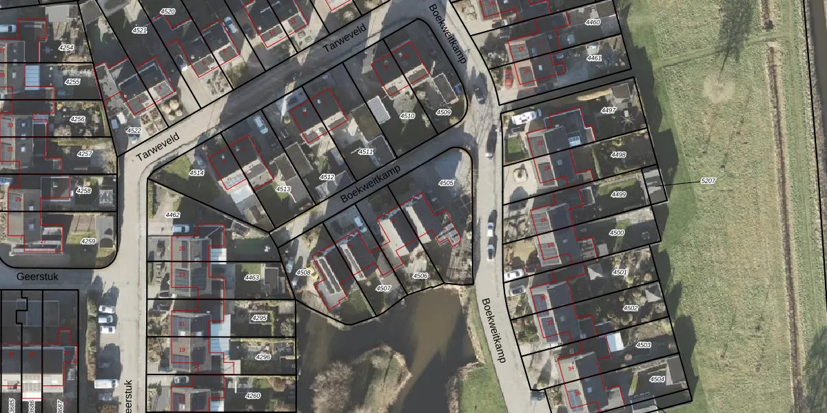 Het perceel waarop Boekweitkamp 1 staat heeft een oppervlakte van 442 m². Dit is een groot perceel. De perceeloppervlakte wordt geregistreerd door het Kadaster. Gedetailleerde informatie over de maten van dit perceel kunt u vinden in het rapport Kadastrale kaart met maatvoering van Boekweitkamp 1.