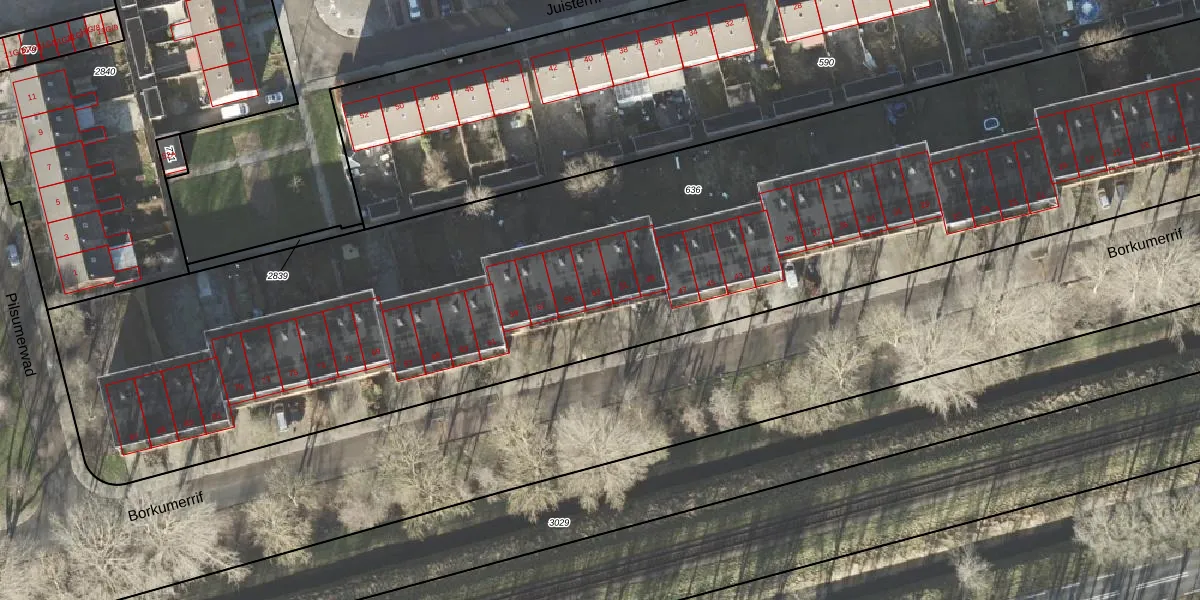 Het perceel waarop Borkumerrif 53 staat heeft een oppervlakte van 6524 m². Dit is een zeer groot perceel. De perceeloppervlakte wordt geregistreerd door het Kadaster. Gedetailleerde informatie over de maten van dit perceel kunt u vinden in het rapport Kadastrale kaart met maatvoering van Borkumerrif 53.