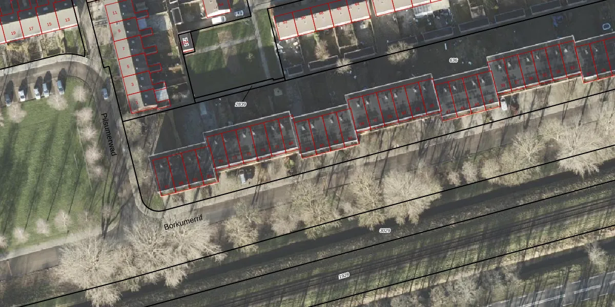 Het perceel waarop Borkumerrif 67 staat heeft een oppervlakte van 6524 m². Dit is een zeer groot perceel. De perceeloppervlakte wordt geregistreerd door het Kadaster. Gedetailleerde informatie over de maten van dit perceel kunt u vinden in het rapport Kadastrale kaart met maatvoering van Borkumerrif 67.
