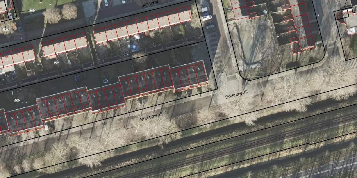 Borkumerrif 7 is gelegen op kadastraal perceel DZL01M636. Deze kadastrale aanduiding is uniek en wordt gebruikt door het Kadaster om eigendomsrechten en andere zakelijke rechten vast te leggen. Het perceel maakt onderdeel uit van de kadastrale gemeente Delfzijl.