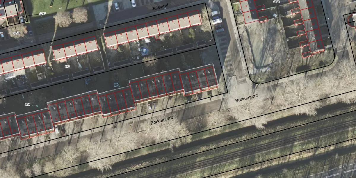 Het perceel waarop Borkumerrif 9 staat heeft een oppervlakte van 6524 m². Dit is een zeer groot perceel. De perceeloppervlakte wordt geregistreerd door het Kadaster. Gedetailleerde informatie over de maten van dit perceel kunt u vinden in het rapport Kadastrale kaart met maatvoering van Borkumerrif 9.