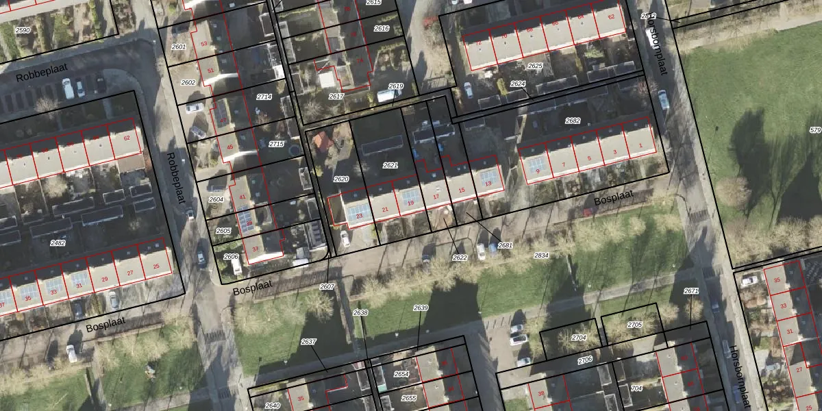 Het perceel waarop Bosplaat 19 staat heeft een oppervlakte van 405 m². Dit is een groot perceel. De perceeloppervlakte wordt geregistreerd door het Kadaster. Gedetailleerde informatie over de maten van dit perceel kunt u vinden in het rapport Kadastrale kaart met maatvoering van Bosplaat 19.