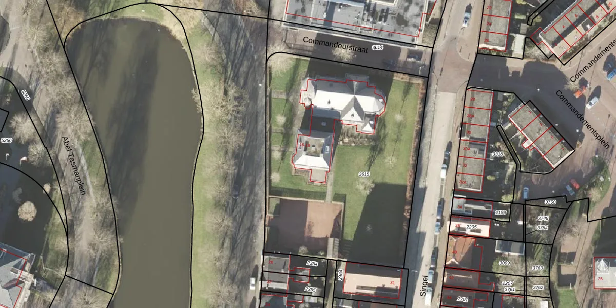Het perceel waarop Buitensingel 18 staat heeft een oppervlakte van 3133 m². Dit is een zeer groot perceel. De perceeloppervlakte wordt geregistreerd door het Kadaster. Gedetailleerde informatie over de maten van dit perceel kunt u vinden in het rapport Kadastrale kaart met maatvoering van Buitensingel 18.