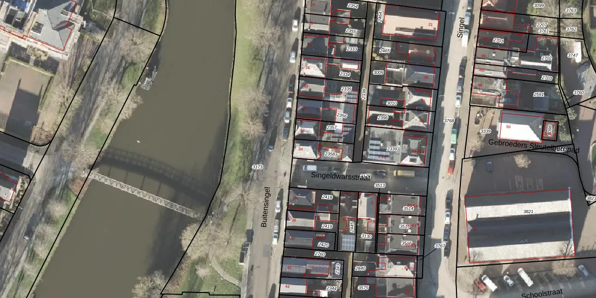 Het perceel waarop Buitensingel 34 staat heeft een oppervlakte van 128 m². Dit is een middelgroot perceel. De perceeloppervlakte wordt geregistreerd door het Kadaster. Gedetailleerde informatie over de maten van dit perceel kunt u vinden in het rapport Kadastrale kaart met maatvoering van Buitensingel 34.