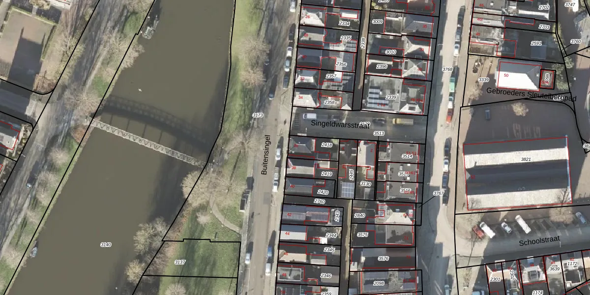Het perceel waarop Buitensingel 36 staat heeft een oppervlakte van 130 m². Dit is een middelgroot perceel. De perceeloppervlakte wordt geregistreerd door het Kadaster. Gedetailleerde informatie over de maten van dit perceel kunt u vinden in het rapport Kadastrale kaart met maatvoering van Buitensingel 36.