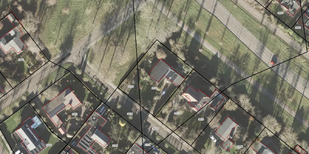 Het perceel waarop Collatorlaan 2 staat heeft een oppervlakte van 1012 m². Dit is een zeer groot perceel. De perceeloppervlakte wordt geregistreerd door het Kadaster. Gedetailleerde informatie over de maten van dit perceel kunt u vinden in het rapport Kadastrale kaart met maatvoering van Collatorlaan 2.