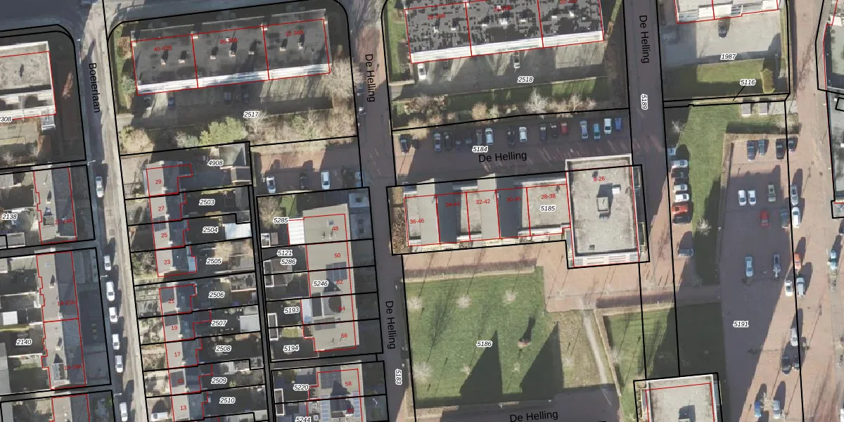 De Helling 36 is gelegen op kadastraal perceel DZL01B5185. Deze kadastrale aanduiding is uniek en wordt gebruikt door het Kadaster om eigendomsrechten en andere zakelijke rechten vast te leggen. Het perceel maakt onderdeel uit van de kadastrale gemeente Delfzijl.