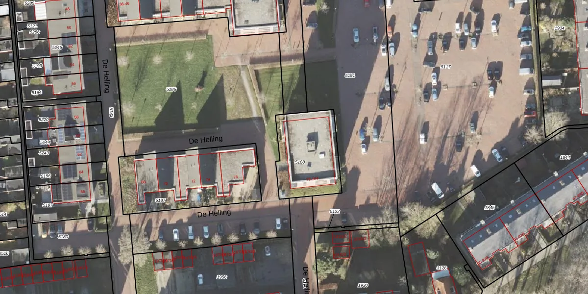 Het perceel waarop De Helling 88 staat heeft een oppervlakte van 587 m². Dit is een groot perceel. De perceeloppervlakte wordt geregistreerd door het Kadaster. Gedetailleerde informatie over de maten van dit perceel kunt u vinden in het rapport Kadastrale kaart met maatvoering van De Helling 88.