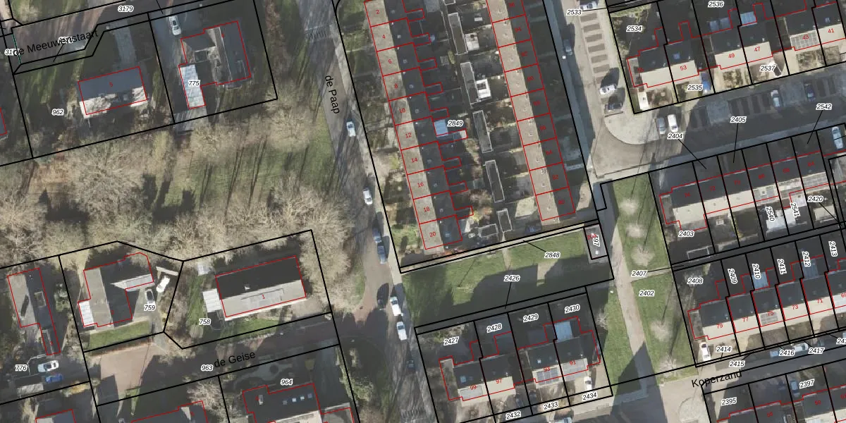 Het perceel waarop de Paap 18 staat heeft een oppervlakte van 3197 m². Dit is een zeer groot perceel. De perceeloppervlakte wordt geregistreerd door het Kadaster. Gedetailleerde informatie over de maten van dit perceel kunt u vinden in het rapport Kadastrale kaart met maatvoering van de Paap 18.