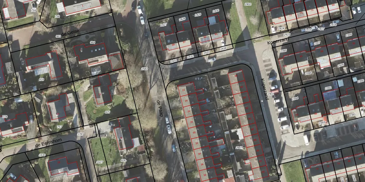 Het perceel waarop de Paap 22 staat heeft een oppervlakte van 3243 m². Dit is een zeer groot perceel. De perceeloppervlakte wordt geregistreerd door het Kadaster. Gedetailleerde informatie over de maten van dit perceel kunt u vinden in het rapport Kadastrale kaart met maatvoering van de Paap 22.