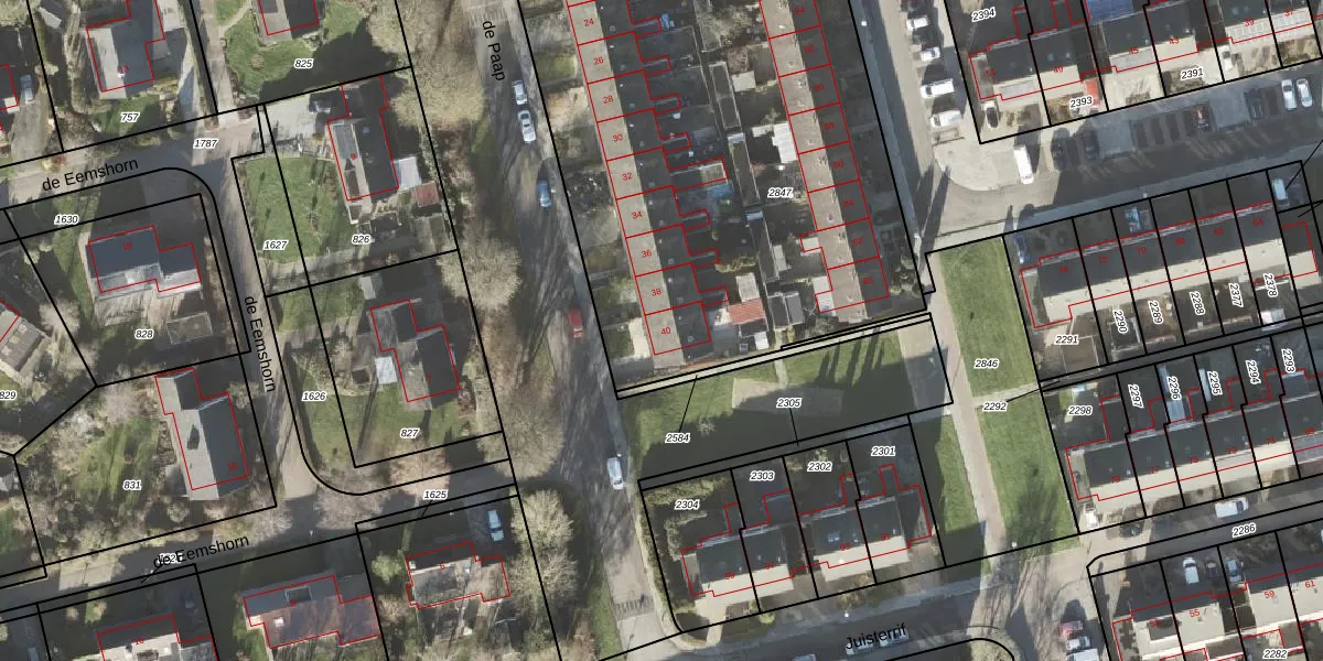 de Paap 40 is gelegen op kadastraal perceel DZL01M2847. Deze kadastrale aanduiding is uniek en wordt gebruikt door het Kadaster om eigendomsrechten en andere zakelijke rechten vast te leggen. Het perceel maakt onderdeel uit van de kadastrale gemeente Delfzijl.