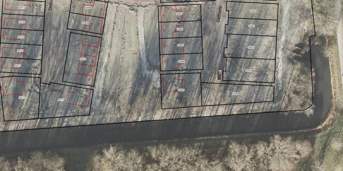 Het perceel waarop Delfzicht 40 staat heeft een oppervlakte van 465 m². Dit is een groot perceel. De perceeloppervlakte wordt geregistreerd door het Kadaster. Gedetailleerde informatie over de maten van dit perceel kunt u vinden in het rapport Kadastrale kaart met maatvoering van Delfzicht 40.