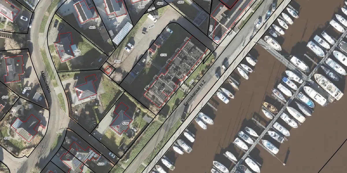 Het perceel waarop Eemskanaal N.Z. 69 staat heeft een oppervlakte van 1388 m². Dit is een zeer groot perceel. De perceeloppervlakte wordt geregistreerd door het Kadaster. Gedetailleerde informatie over de maten van dit perceel kunt u vinden in het rapport Kadastrale kaart met maatvoering van Eemskanaal N.Z. 69.