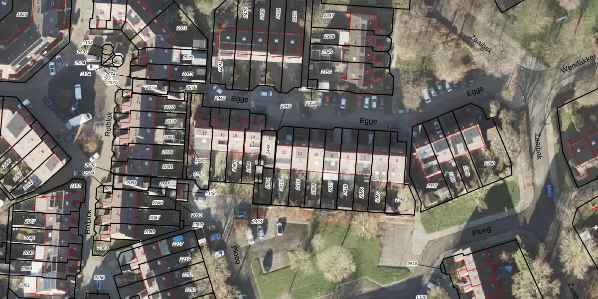 Gebruik de zoekbalk of klik op een perceel voor informatie over de adressen binnen dit perceel.