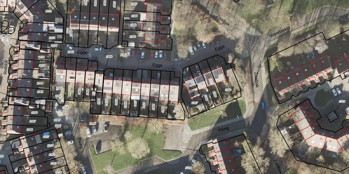 Gebruik de zoekbalk of klik op een perceel voor informatie over de adressen binnen dit perceel.