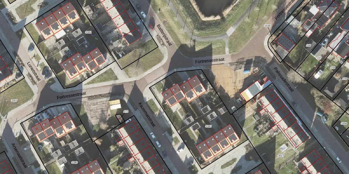 Het perceel waarop Fortressestraat 10 staat heeft een oppervlakte van 1695 m². Dit is een zeer groot perceel. De perceeloppervlakte wordt geregistreerd door het Kadaster. Gedetailleerde informatie over de maten van dit perceel kunt u vinden in het rapport Kadastrale kaart met maatvoering van Fortressestraat 10.
