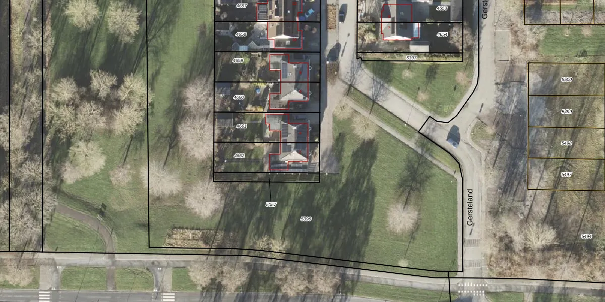 Het perceel waarop Gersteland 2 staat heeft een oppervlakte van 350 m². Dit is een groot perceel. De perceeloppervlakte wordt geregistreerd door het Kadaster. Gedetailleerde informatie over de maten van dit perceel kunt u vinden in het rapport Kadastrale kaart met maatvoering van Gersteland 2.