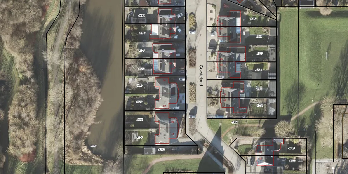 Het perceel waarop Gersteland 24 staat heeft een oppervlakte van 350 m². Dit is een groot perceel. De perceeloppervlakte wordt geregistreerd door het Kadaster. Gedetailleerde informatie over de maten van dit perceel kunt u vinden in het rapport Kadastrale kaart met maatvoering van Gersteland 24.