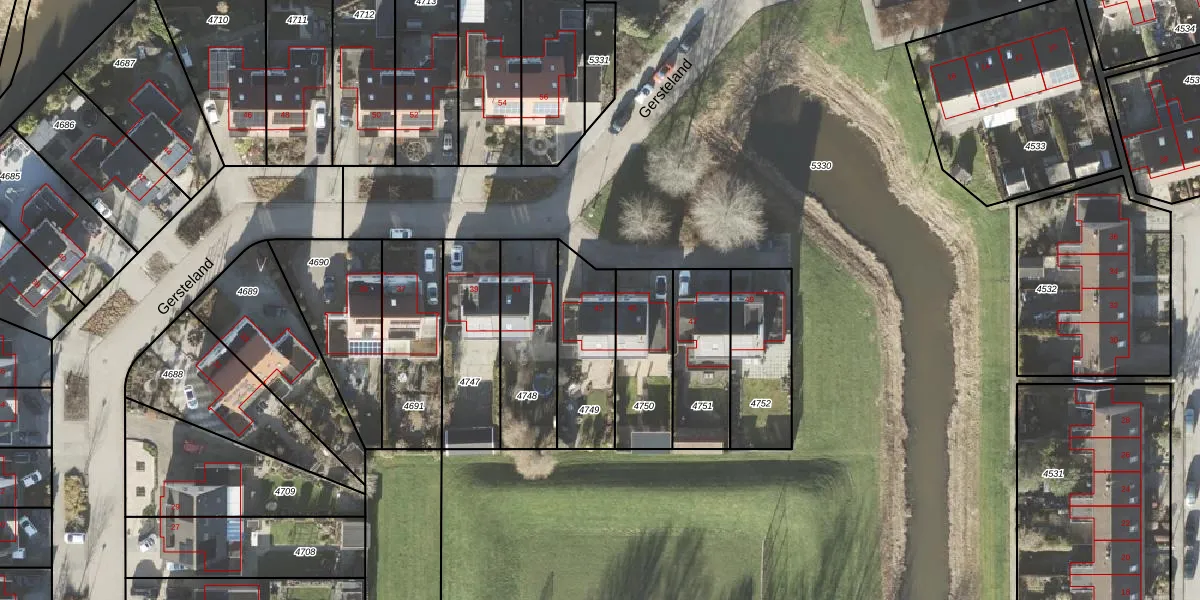 Het perceel waarop Gersteland 43 staat heeft een oppervlakte van 304 m². Dit is een groot perceel. De perceeloppervlakte wordt geregistreerd door het Kadaster. Gedetailleerde informatie over de maten van dit perceel kunt u vinden in het rapport Kadastrale kaart met maatvoering van Gersteland 43.