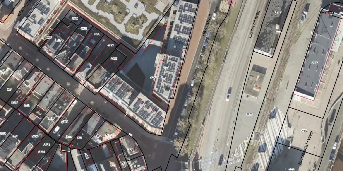 Het perceel waarop Havenstraat 15 staat heeft een oppervlakte van 2227 m². Dit is een zeer groot perceel. De perceeloppervlakte wordt geregistreerd door het Kadaster. Gedetailleerde informatie over de maten van dit perceel kunt u vinden in het rapport Kadastrale kaart met maatvoering van Havenstraat 15.