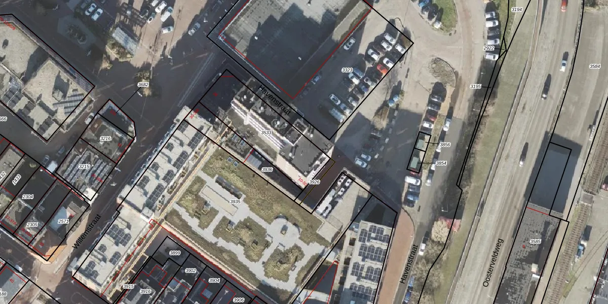 Het perceel waarop Havenstraat 46 staat heeft een oppervlakte van 630 m². Dit is een groot perceel. De perceeloppervlakte wordt geregistreerd door het Kadaster. Gedetailleerde informatie over de maten van dit perceel kunt u vinden in het rapport Kadastrale kaart met maatvoering van Havenstraat 46.