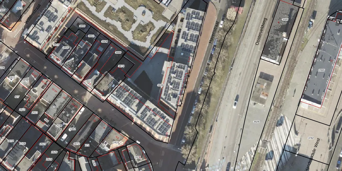 Het perceel waarop Havenstraat 47 staat heeft een oppervlakte van 2227 m². Dit is een zeer groot perceel. De perceeloppervlakte wordt geregistreerd door het Kadaster. Gedetailleerde informatie over de maten van dit perceel kunt u vinden in het rapport Kadastrale kaart met maatvoering van Havenstraat 47.
