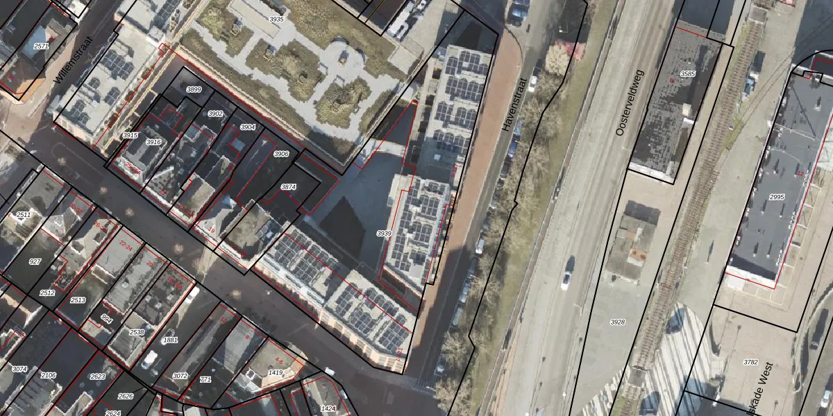 Het perceel waarop Havenstraat 49 staat heeft een oppervlakte van 2227 m². Dit is een zeer groot perceel. De perceeloppervlakte wordt geregistreerd door het Kadaster. Gedetailleerde informatie over de maten van dit perceel kunt u vinden in het rapport Kadastrale kaart met maatvoering van Havenstraat 49.