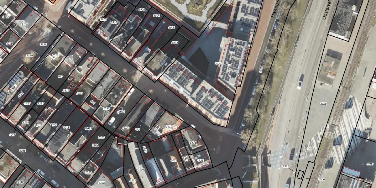 Het perceel waarop Havenstraat 67 staat heeft een oppervlakte van 2227 m². Dit is een zeer groot perceel. De perceeloppervlakte wordt geregistreerd door het Kadaster. Gedetailleerde informatie over de maten van dit perceel kunt u vinden in het rapport Kadastrale kaart met maatvoering van Havenstraat 67.