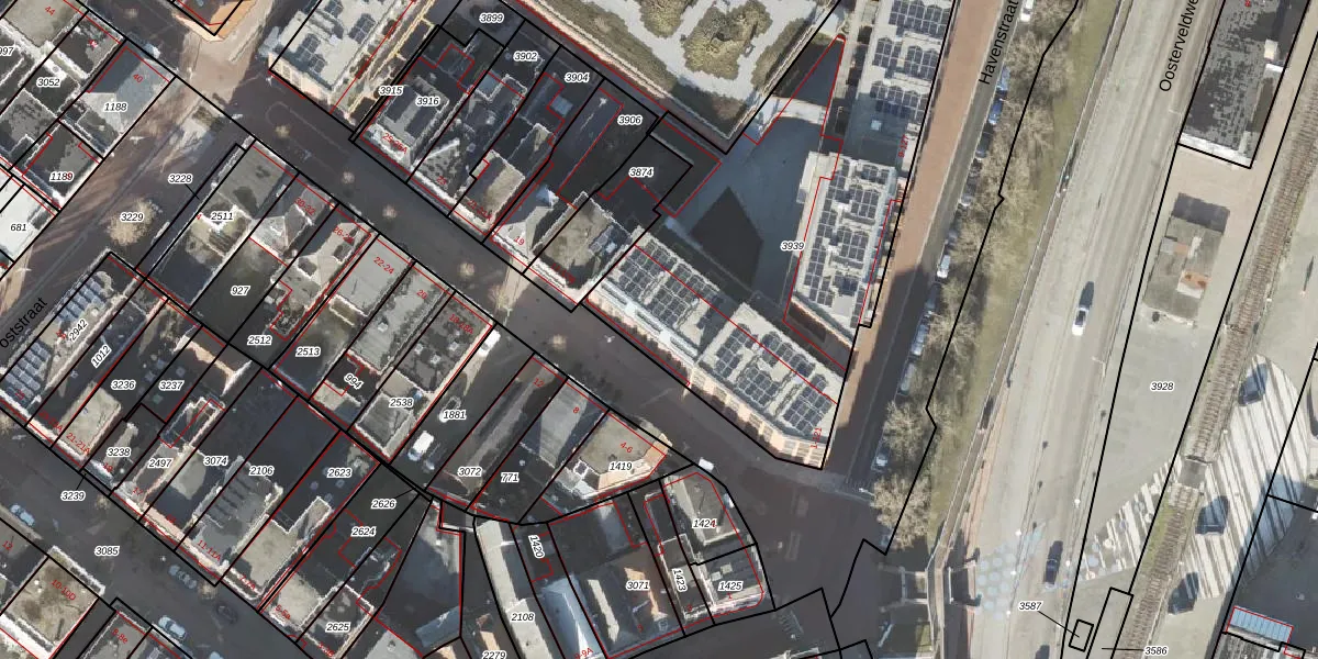 Het perceel waarop Havenstraat 69 staat heeft een oppervlakte van 2227 m². Dit is een zeer groot perceel. De perceeloppervlakte wordt geregistreerd door het Kadaster. Gedetailleerde informatie over de maten van dit perceel kunt u vinden in het rapport Kadastrale kaart met maatvoering van Havenstraat 69.
