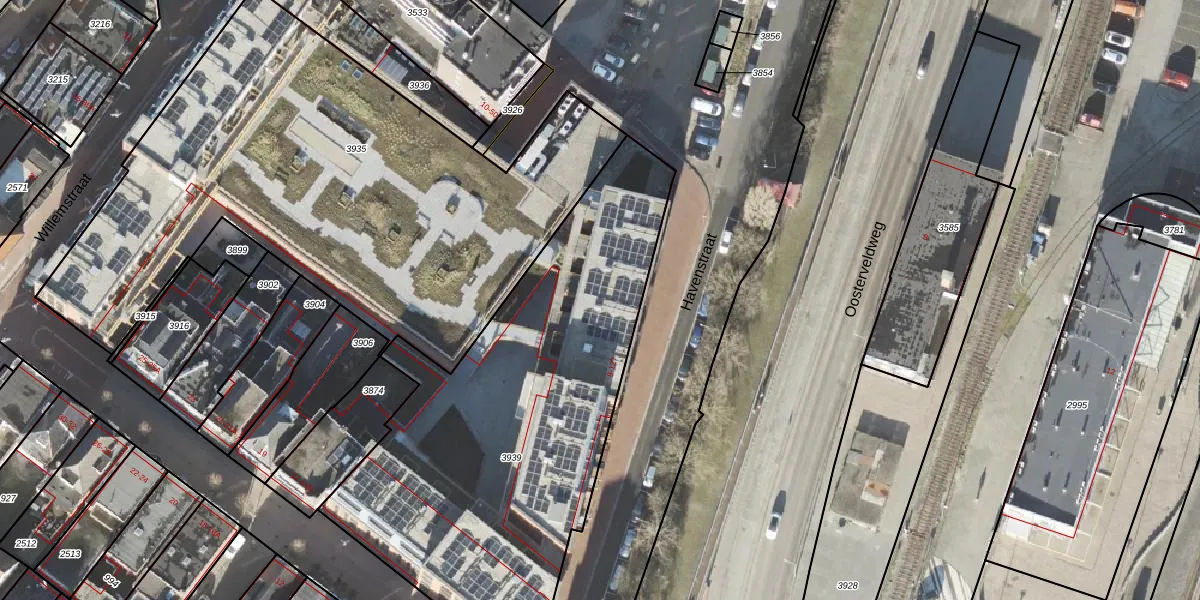 Het perceel waarop Havenstraat 83 staat heeft een oppervlakte van 2227 m². Dit is een zeer groot perceel. De perceeloppervlakte wordt geregistreerd door het Kadaster. Gedetailleerde informatie over de maten van dit perceel kunt u vinden in het rapport Kadastrale kaart met maatvoering van Havenstraat 83.